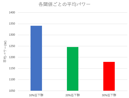下記グラフは各閾値ごとの平均速度と平均パワーを表したものです。
