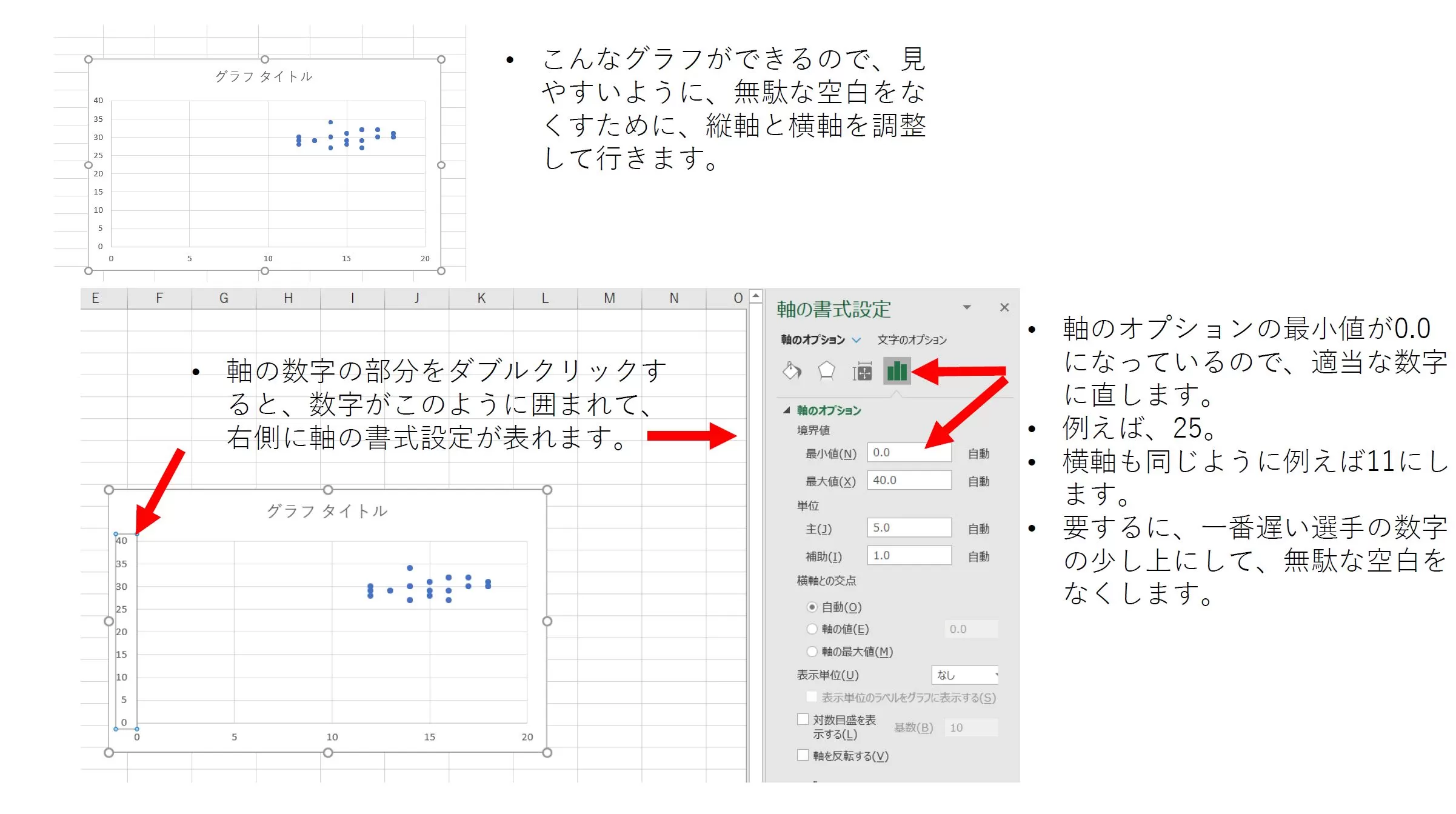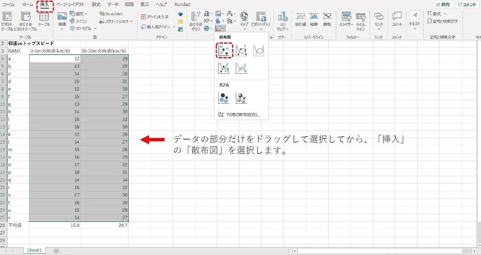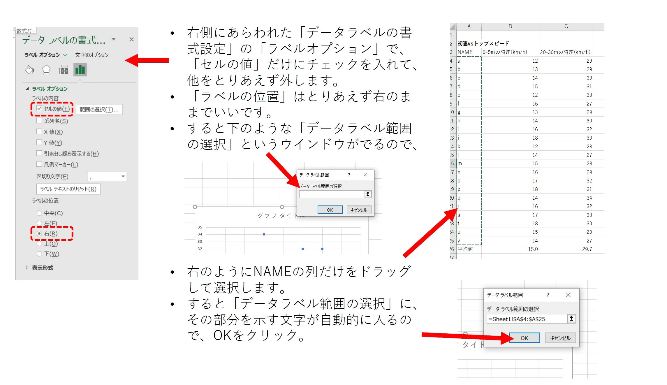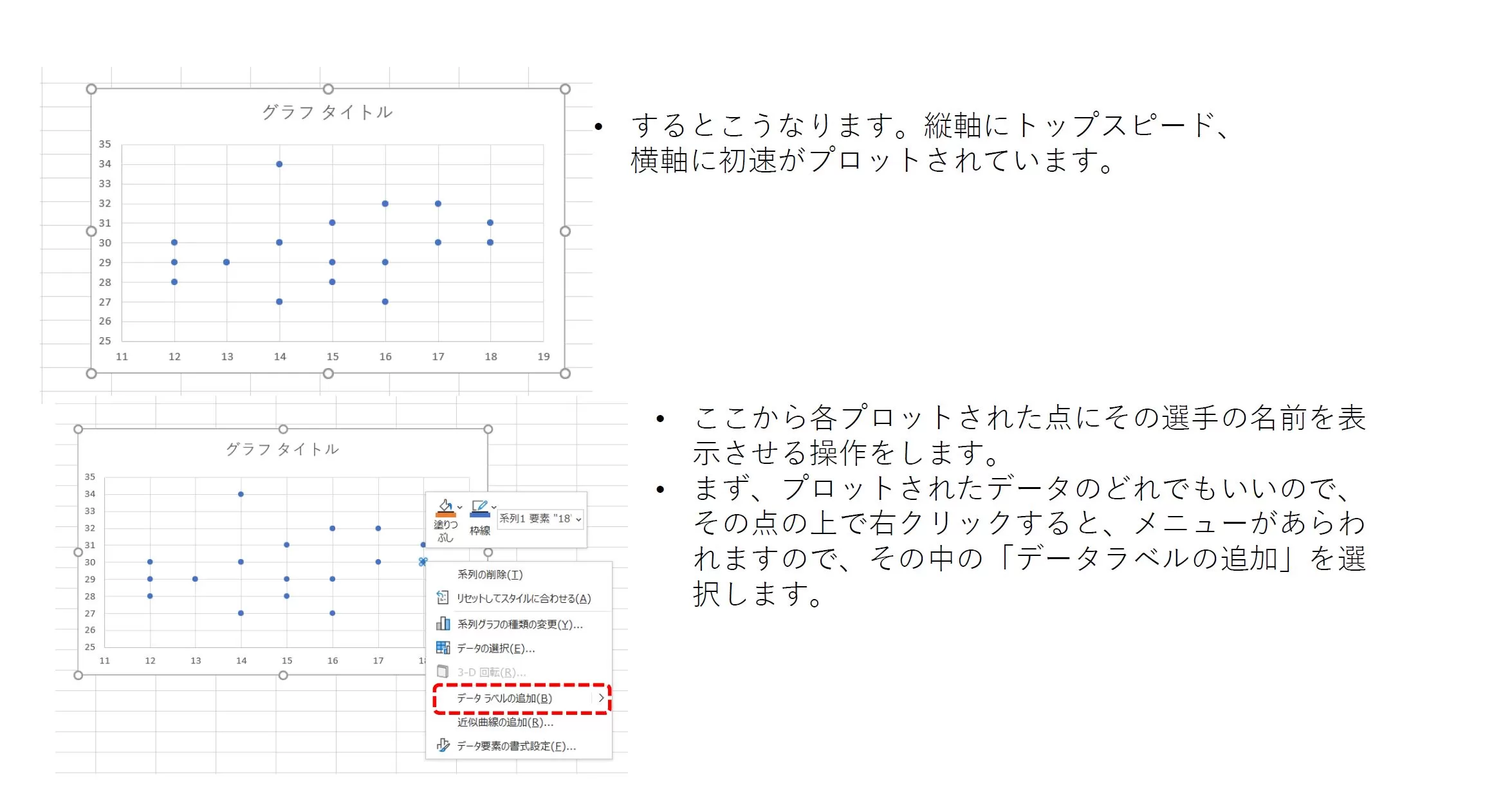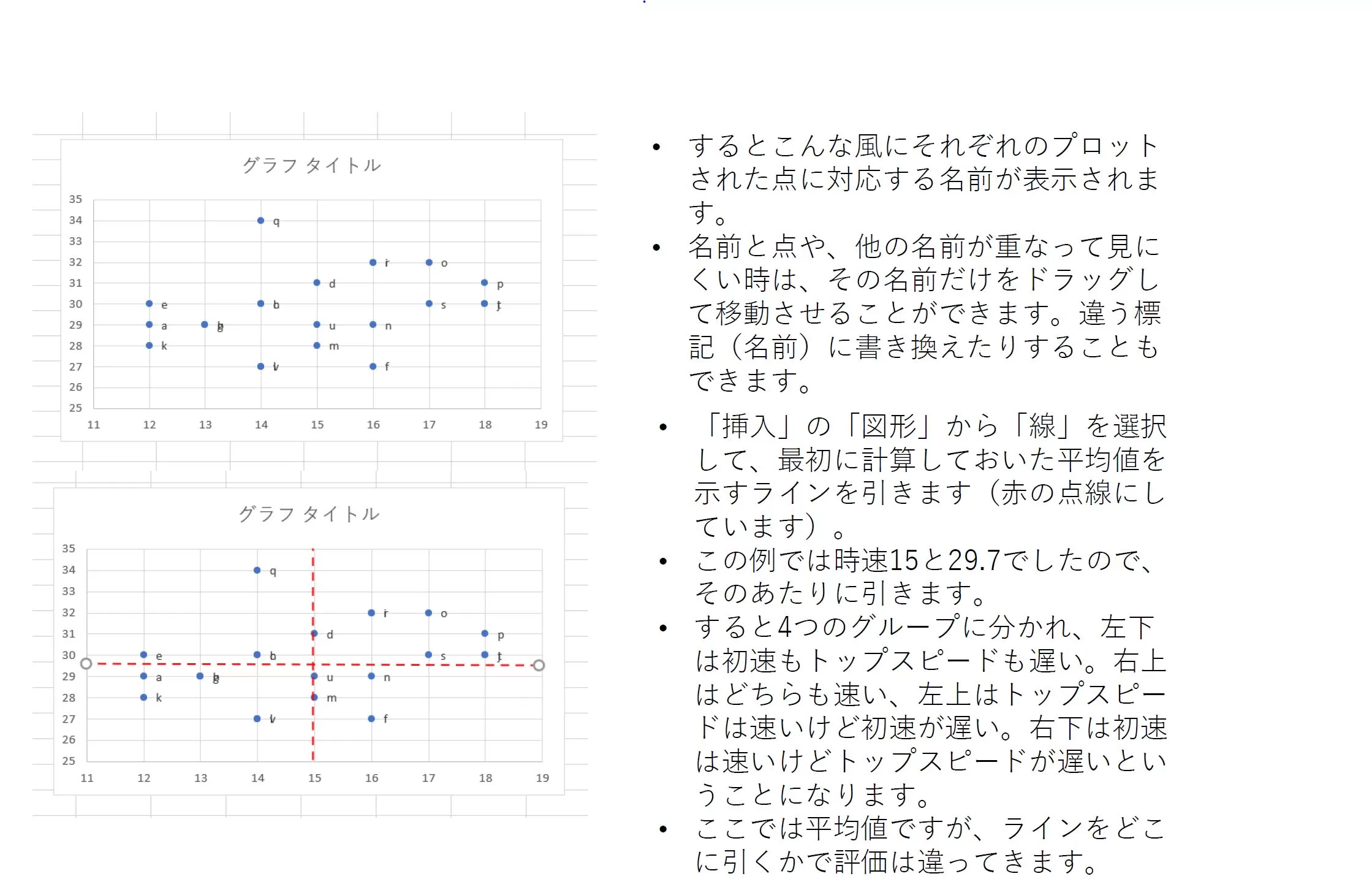 Excel®によるスプリントにおける出だしのスピードとップスピードの散 布図の作成法とそのグラフに氏名を入れる方法