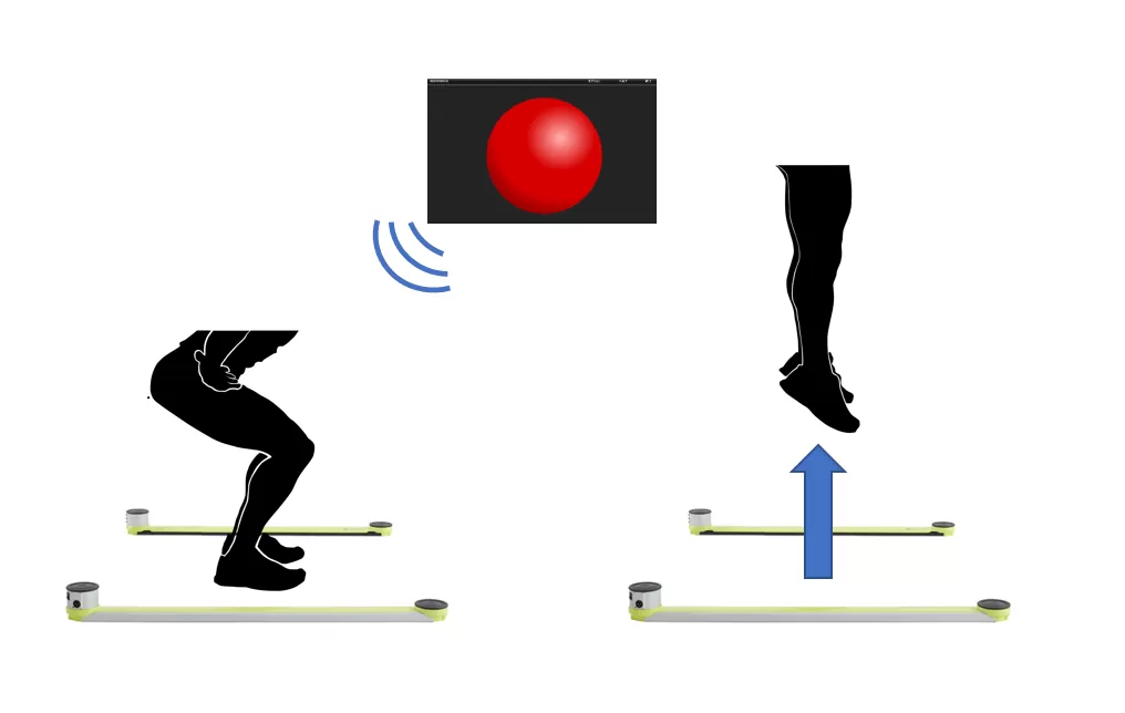 ・視覚反応テスト(垂直跳び:両足で測定エリア内で構え、反応が出たら素早く跳躍する)