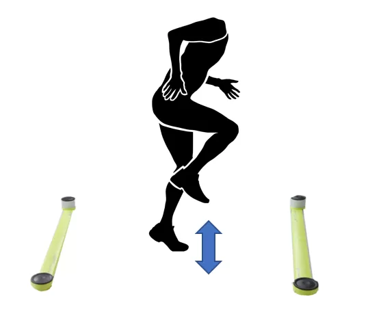 測定エリア内でリバウンドジャンプを行うことで、1跳躍ごとの接地時間、滞空時間、跳躍高、RSI(Reactive Strength Index:ばね指数)を計測可能です。