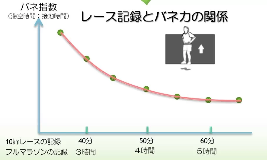 このテストで「滞空時間÷接地時間」で得られるバネ指数というものを計算して出します。