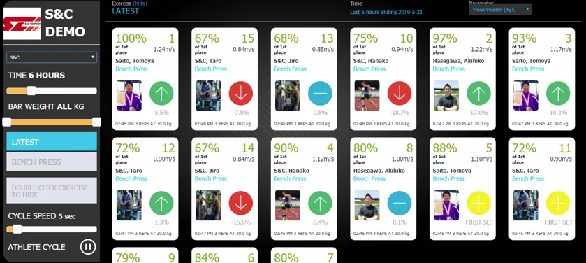 このように、GymAwareRSを使用したVBTはGymCloudPROを使用することで、さらに管理しやすく、選手のモチベーションを向上させてトレーニング効果・効率を高めることができます。