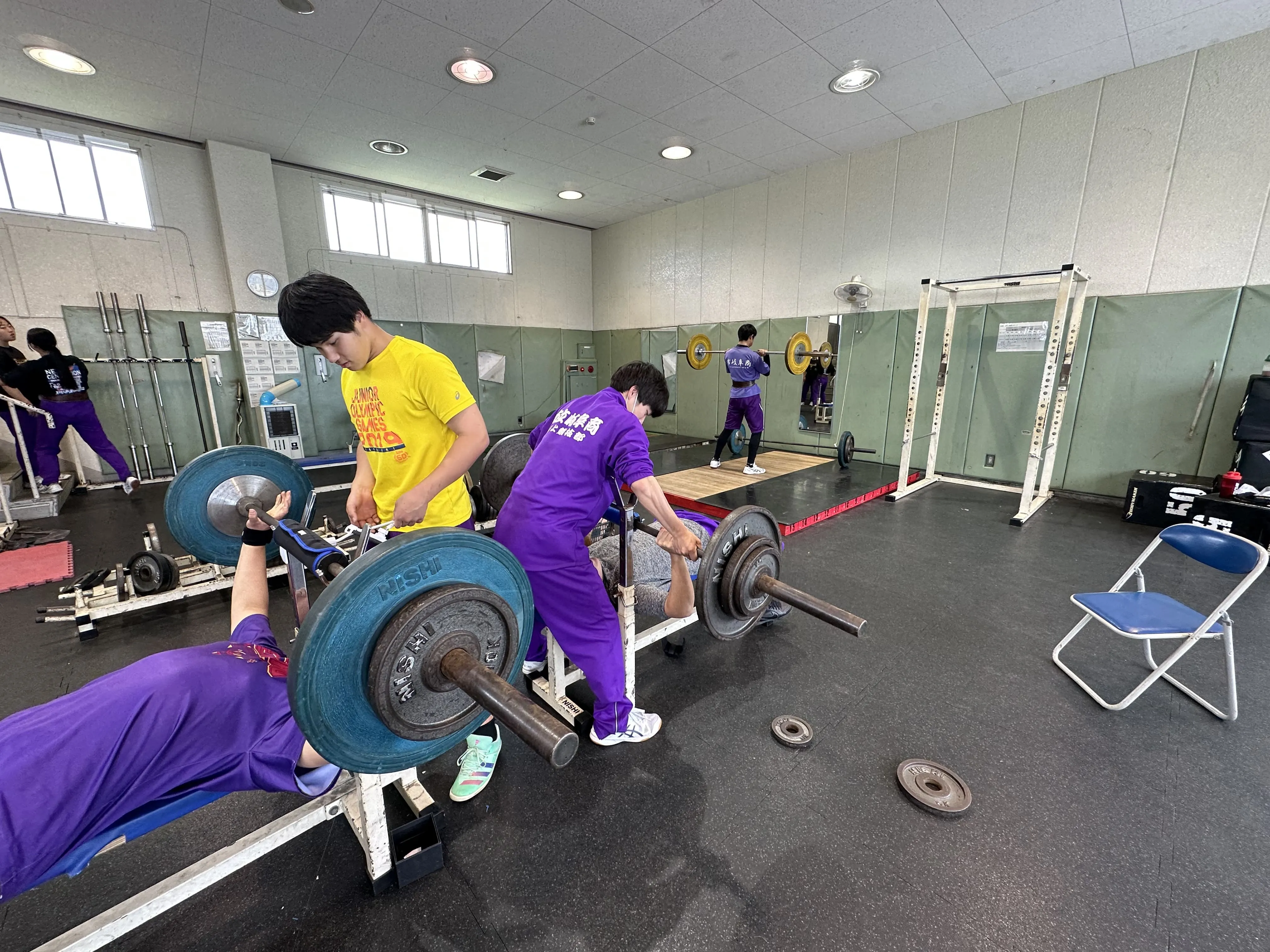投擲種目では、投射スピードが重要であるため、ウエイトトレーニングでも同じ意識を持たせてトレーニングを行っています。