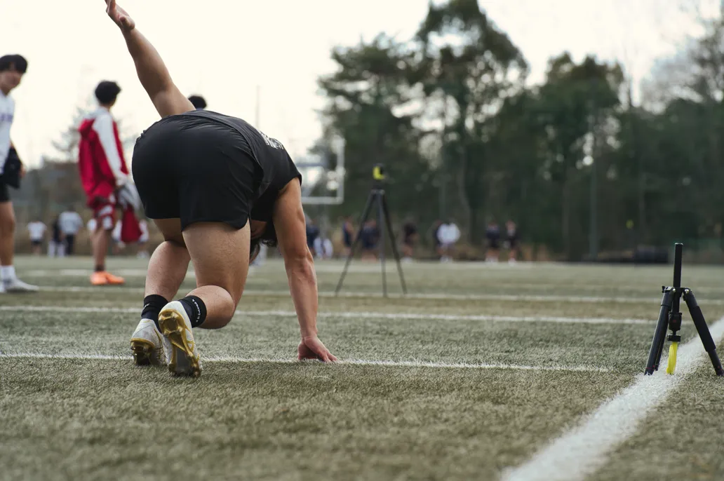 アメリカンフットボール特有の3ポイントスタートに対応した使用方法が可能です。